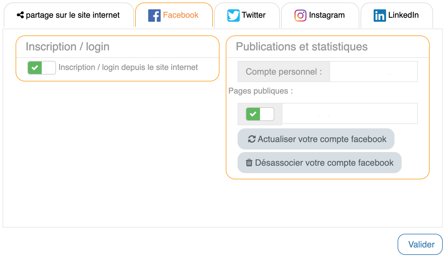 Paramètres Réseaux Sociaux |