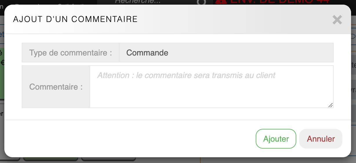 Fenêtre Ajouter un commentaireUne fenêtre s'ouvre permettant d'ajouter le message souhaité.