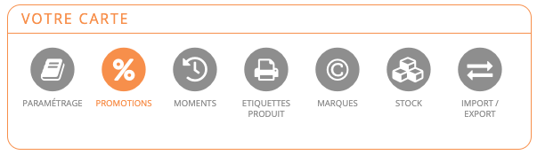 Interface Paramètres - Votre carte - Promotions