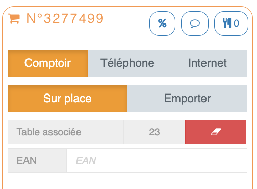 pour savoir à quelle table correspondent les produits commandés. Il est possible d'associer une table en caisse uniquement pour les commandes « Sur place ».