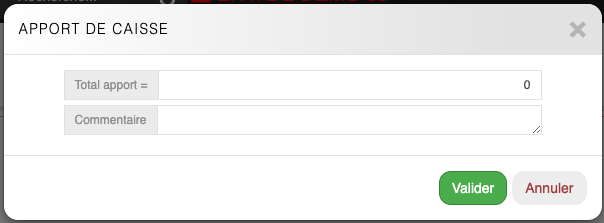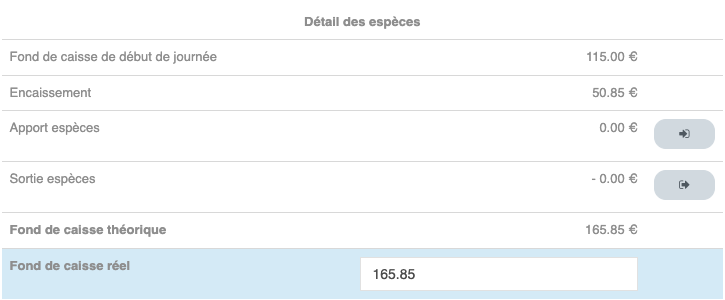 Détail des espècesDans le détail des espèces, il est possible de faire un apport ou une sortie de caisse.