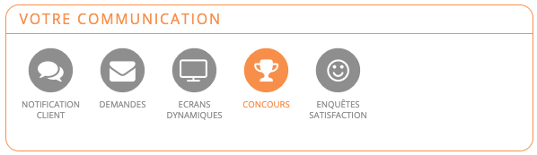 Interface Paramètres - Votre communication - ConcoursPour voir l’ensemble des concours et en créer de nouveau, il se faut rendre dans les « Paramètres » puis dans le bloc « Votre communication » cliquer sur « Concours ».