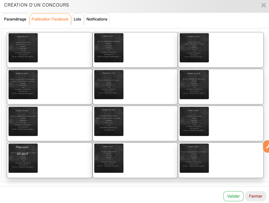 Le concours est rattaché à une publication Facebook qui a été diffusée et prendra en compte les interactions des visiteurs. Si ce n'est pas déjà le cas, il faut rédiger un post qui donne envie de participer au concours et le publier sur Facebook afin d'associer le concours à cette publication Facebook.