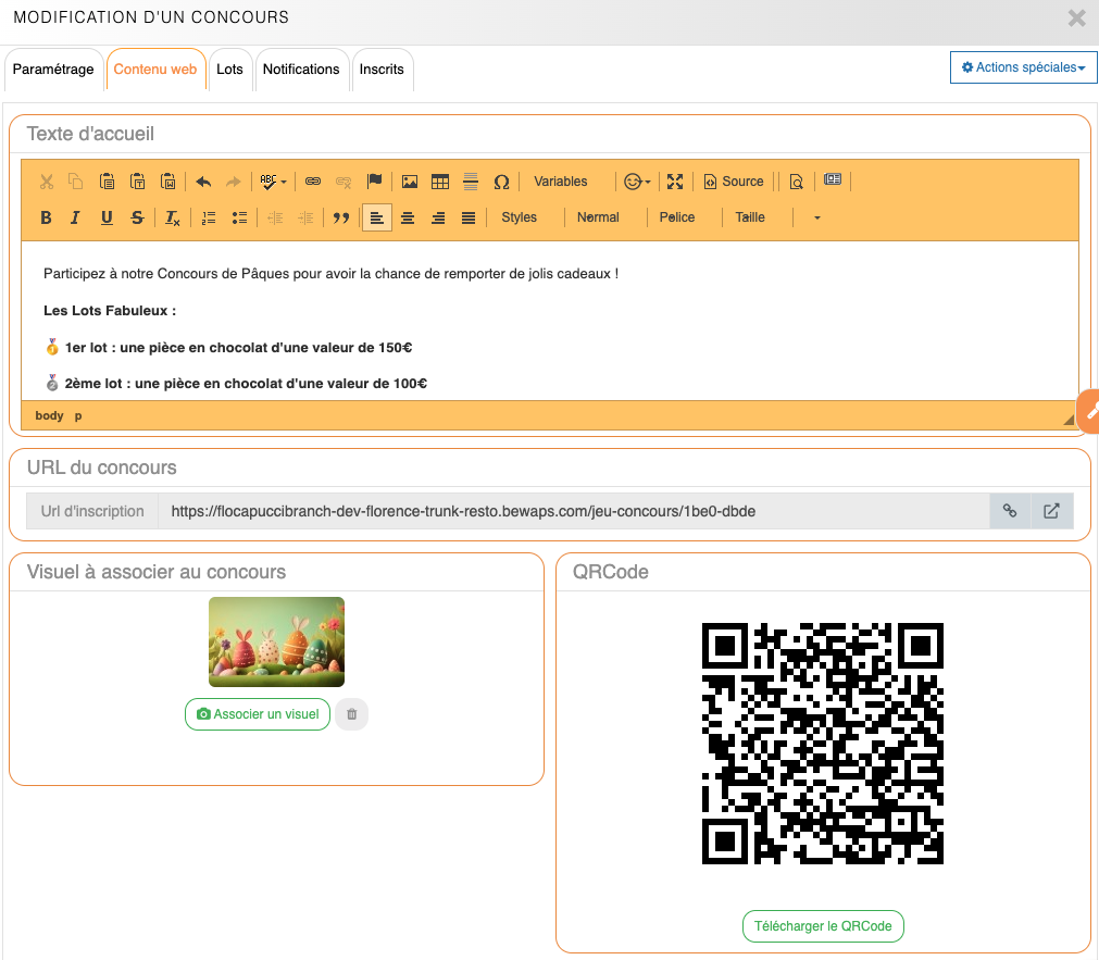 Création et modification d'un jeu-concours