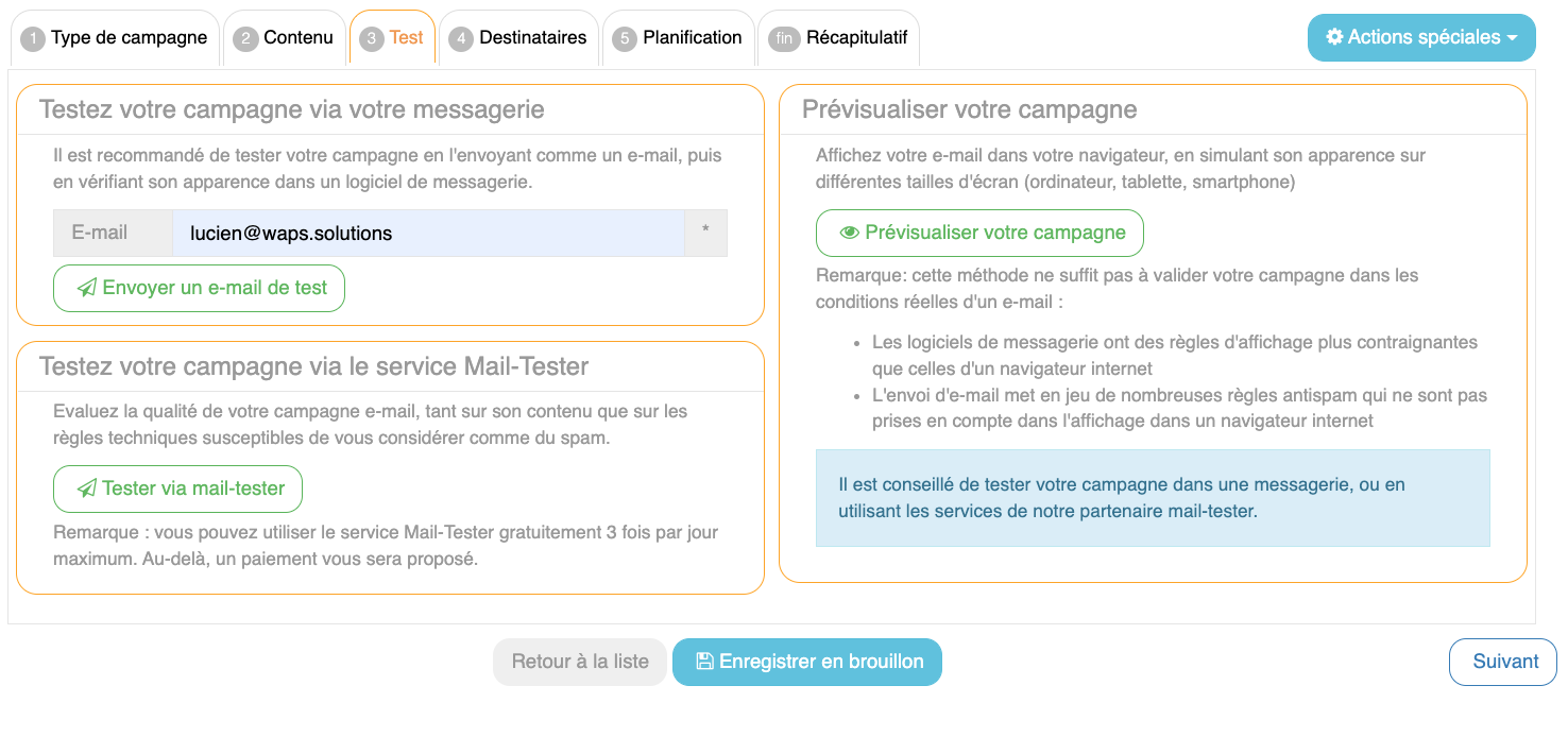 Test d'envoi de la campagne