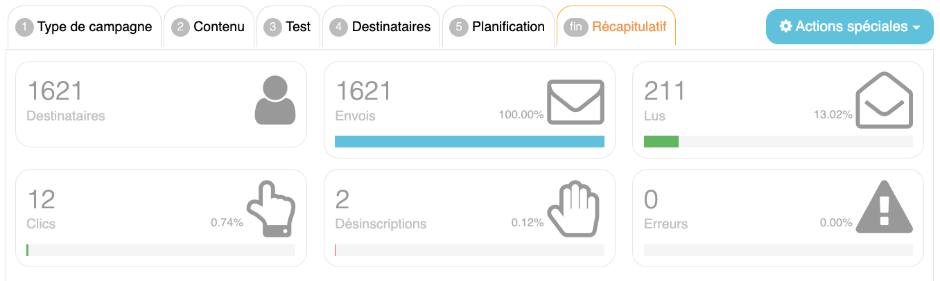 Récapitulatif d'envoi de campagne