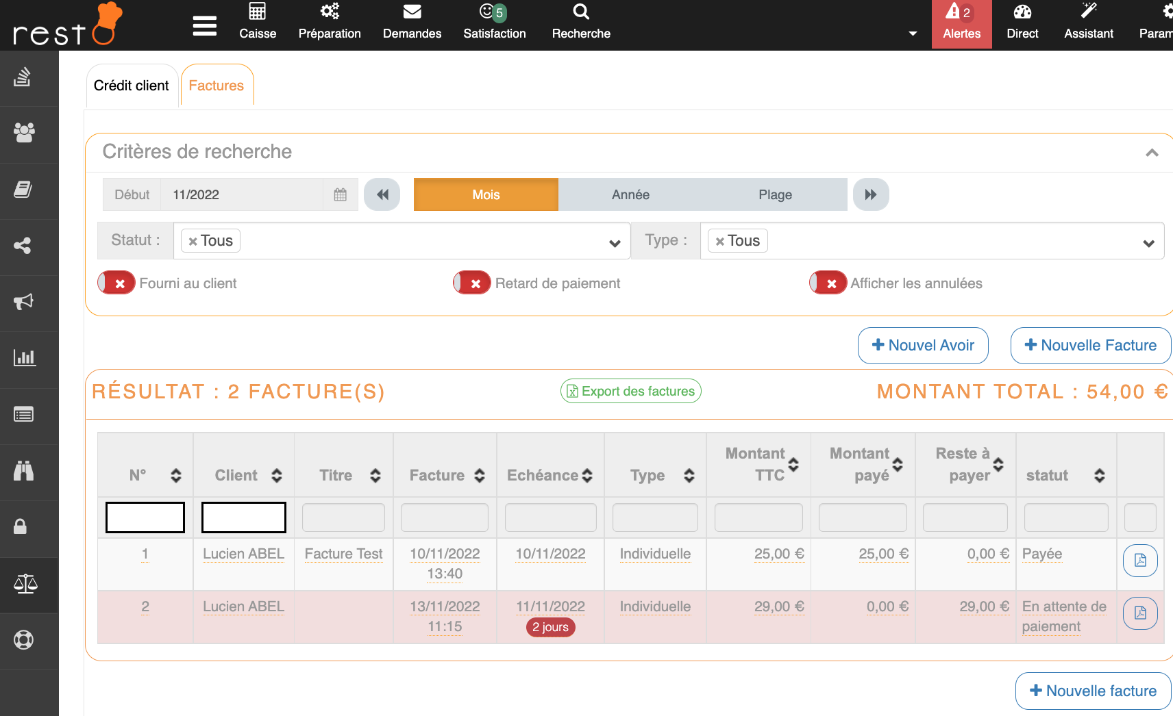 Avec la solution Restô, le restaurateur peut accorder des crédits à ses clients, visualiser rapidement les crédits accordés et générer des factures récapitulatives (voir Qu'est ce qu'une facture récapitulative ?) afin de permettre aux consommateurs ...
