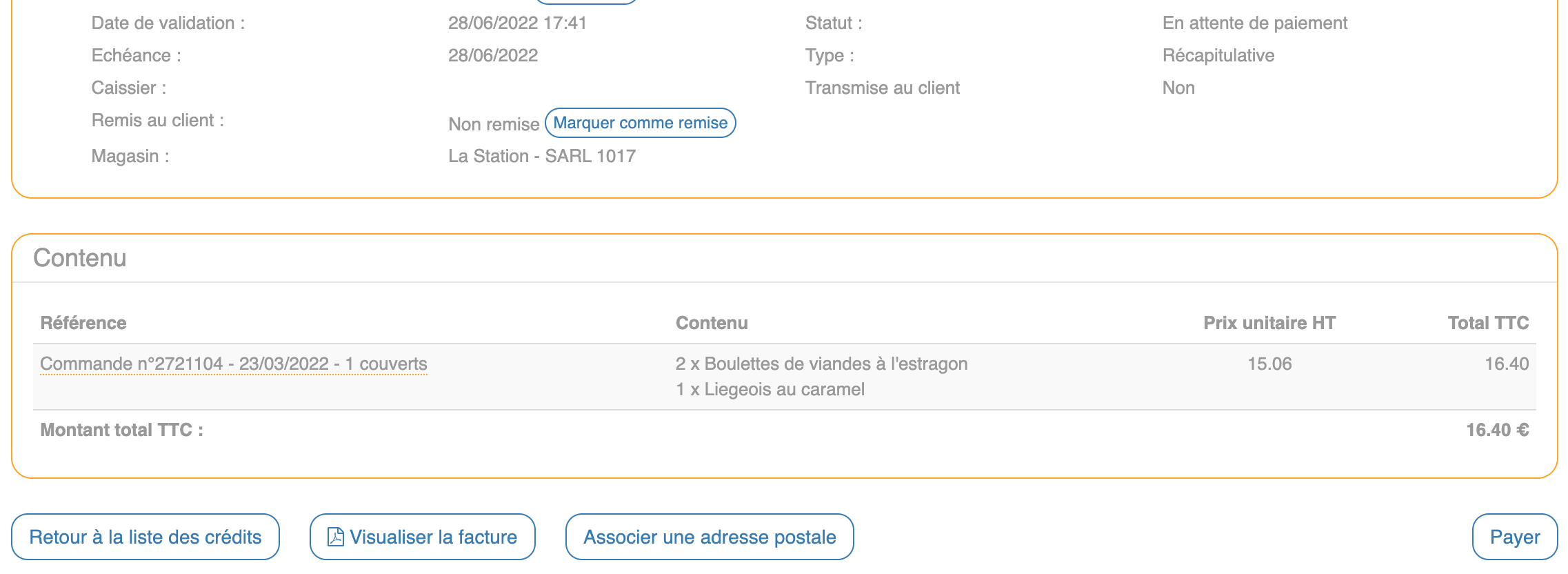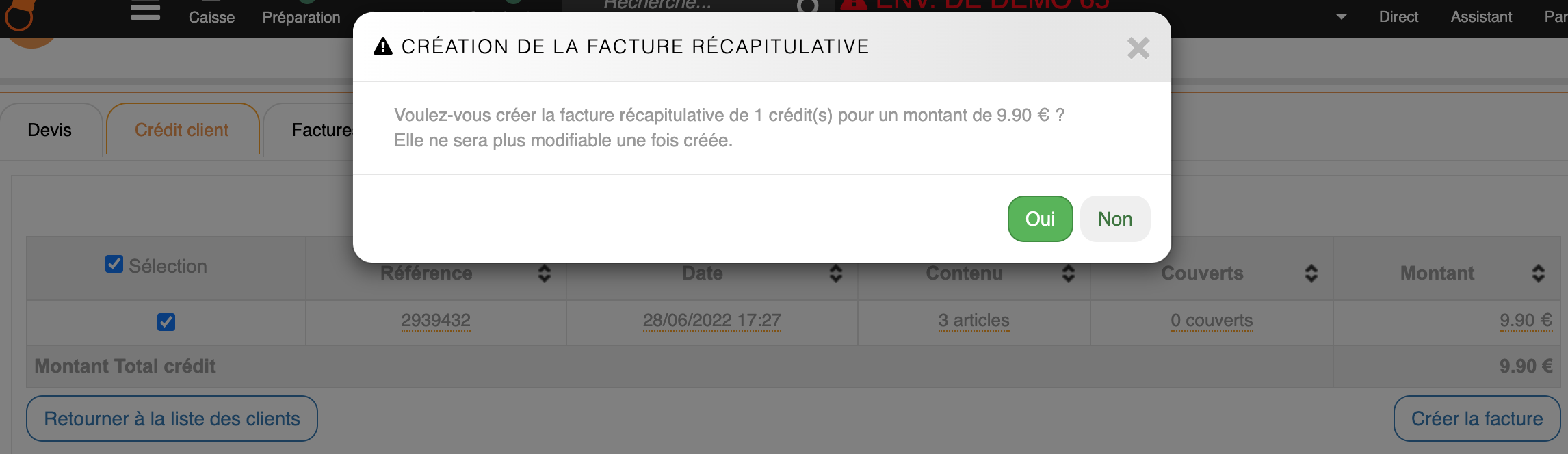 Avec Restô, le restaurateur peut accorder des crédits à ses clients et générer des factures récapitulatives afin de permettre aux consommateurs de régler leurs créances. La facture récapitulative reprend les crédits accordés au client dans le but de ...