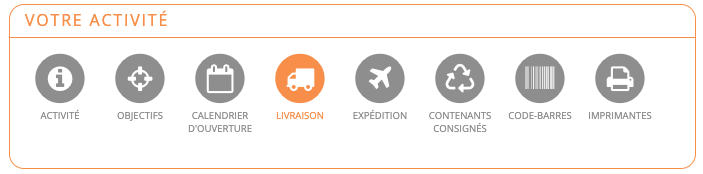 Interface Paramètres - Votre activité - LivraisonPour paramétrer les règles et zones de livraisons, cliquer sur « Paramètres » puis dans le bloc « Votre activité » cliquer sur « Livraison ».