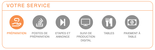 La solution Restô permet de gérer les paramètres liés aux commandes en caisse et sur internet. De nombreuses options sont possibles : l'envoi de notifications clients, la gestion du temps de traitement des commandes, la qualification des commandes ...
