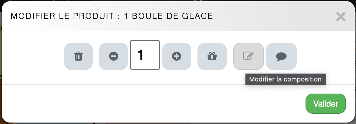 Modifier la composition produitLe bouton de modification permet de changer la composition d'un produit.