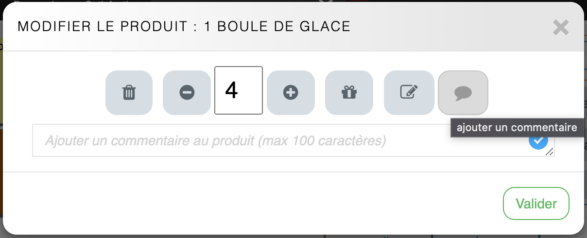 Ajouter un commentaire produitLe bouton de droite permet de faire apparaître un champ commentaire afin d'apporter une précision sur le produit.