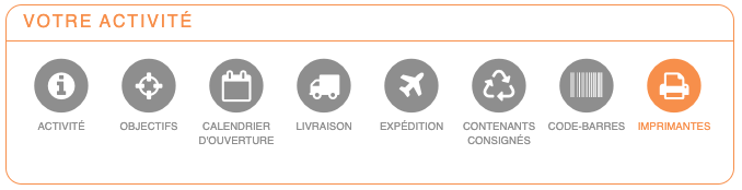 Interface Paramètres - Votre activité - ImprimantesPour voir toutes les imprimantes, cliquer sur « Paramètres » puis dans le bloc « Votre activité », cliquer sur « Imprimantes ».