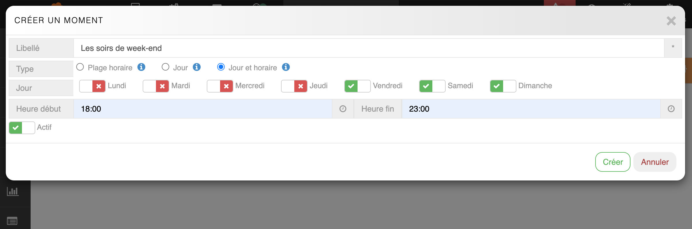 Une fois les informations renseignées, il ne reste plus qu'à rendre le moment actif avant de valider en cliquant sur « Créer ».
