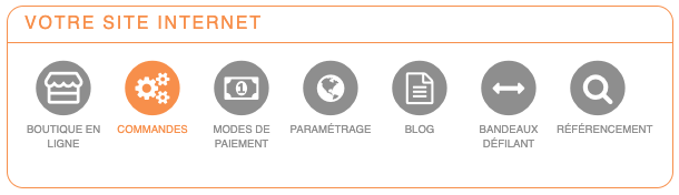 Ces options sont accessibles depuis les « Paramètres », dans le bloc « Votre site internet » en cliquant sur « Commandes ».