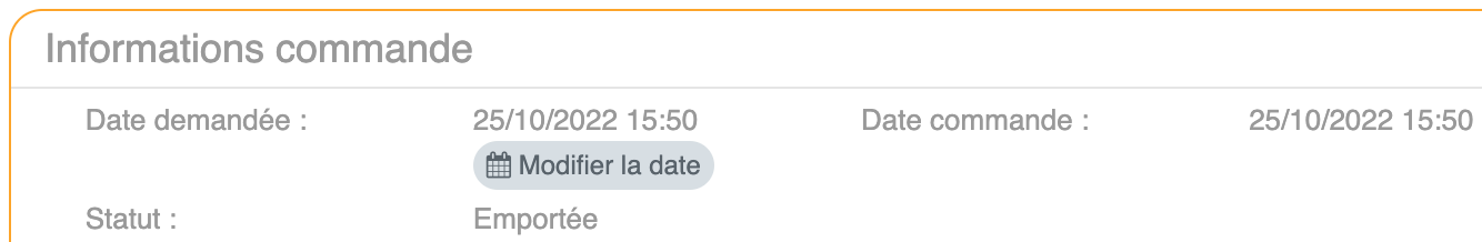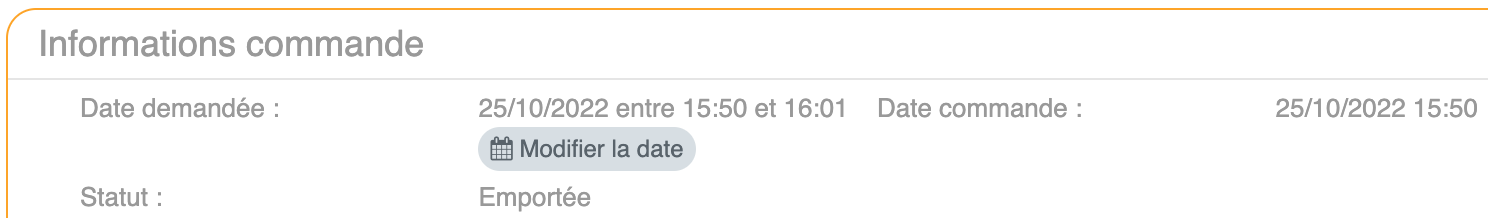 Interface Gestion de la duréeSi l'option Afficher les horaires sous forme de créneau est activé, la date est indiquée sous forme de créneau sur les fiches commandes.