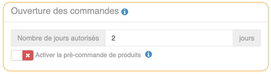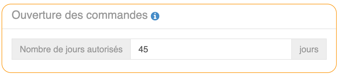 Bloc Réception des commandesCe bloc sert à définir le nombre de jours ouvert afin de planifier une demande futur en caisse.