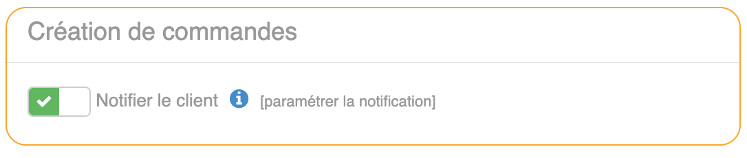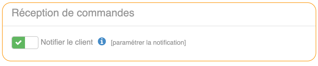 Bloc Réception de commande internetL'option Notifier le client permet d'informer le client lorsque sa commande sera prête.