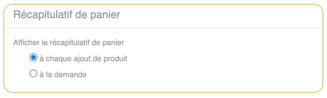 Cette option permet de définir si le panier doit s'afficher lors de l'ajout de chaque produit ou seulement lorsque le client clique sur le panier.