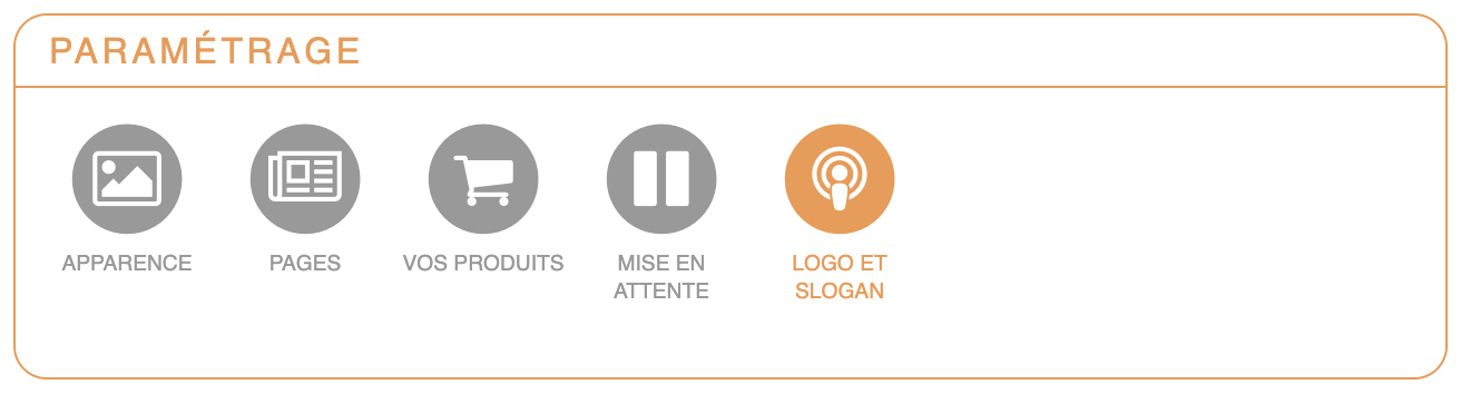 Pour cela, il faut aller dans « Paramètres » puis dans le bloc « Votre Site Web » cliquer sur « Paramétrage » et enfin cliquer sur « Logo et Slogan ».