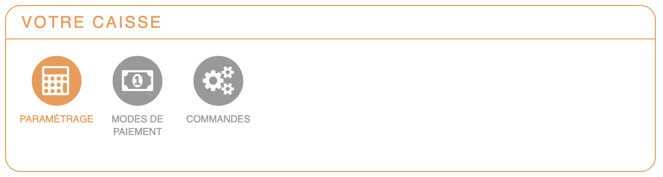 Interface Paramètres - Votre caisse - ParamétragePour paramétrer le ticket de caisse, il faut aller dans « Paramètres » , bloc « Votre caisse » puis cliquer sur « Paramétrage » et aller dans l'onglet « Ticket de caisse ».