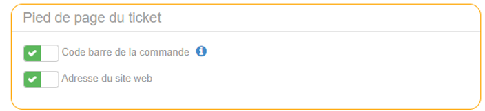 Paramétrage Pied de Page Ticket de CaisseDans le pied de page du ticket de caisse, on peut afficher l’adresse du site web du restaurant, mais également le code-barres de la commande.