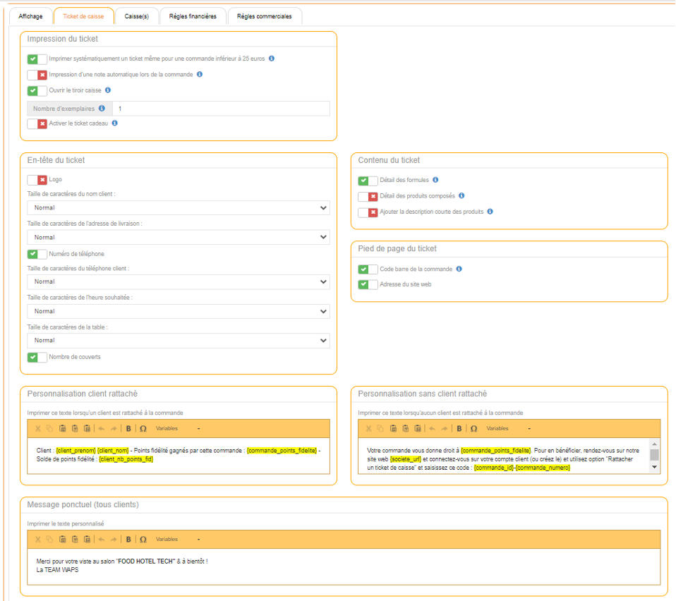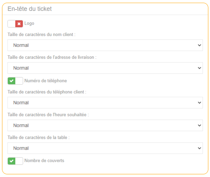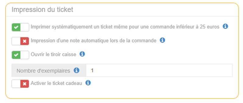 Le restaurateur a la possibilité de paramétrer l'impression de ces tickets de caisse.