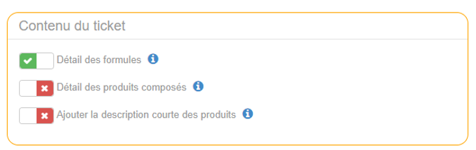 Paramétrage Contenu Ticket de CaisseL’option « Détail des formules » va permettre d’afficher sur le ticket de caisse chaque produit de la formule (un produit par ligne).
