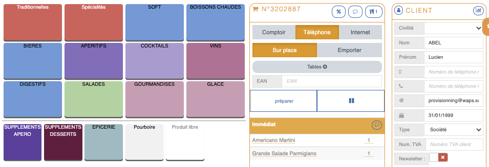 Transformer un devis en commandeUne fois sélectionné, le restaurateur est redirigé en caisse afin de pouvoir envoyer la commande en préparation.