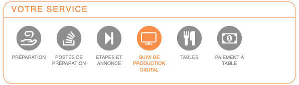 Interface Paramètres - Votre service - Suivi de production digitalLe restaurateur peut activer et paramétrer le suivi des commandes en allant dans « Paramètres », puis dans le bloc « Votre service », cliquer sur « Suivi de production digital ».