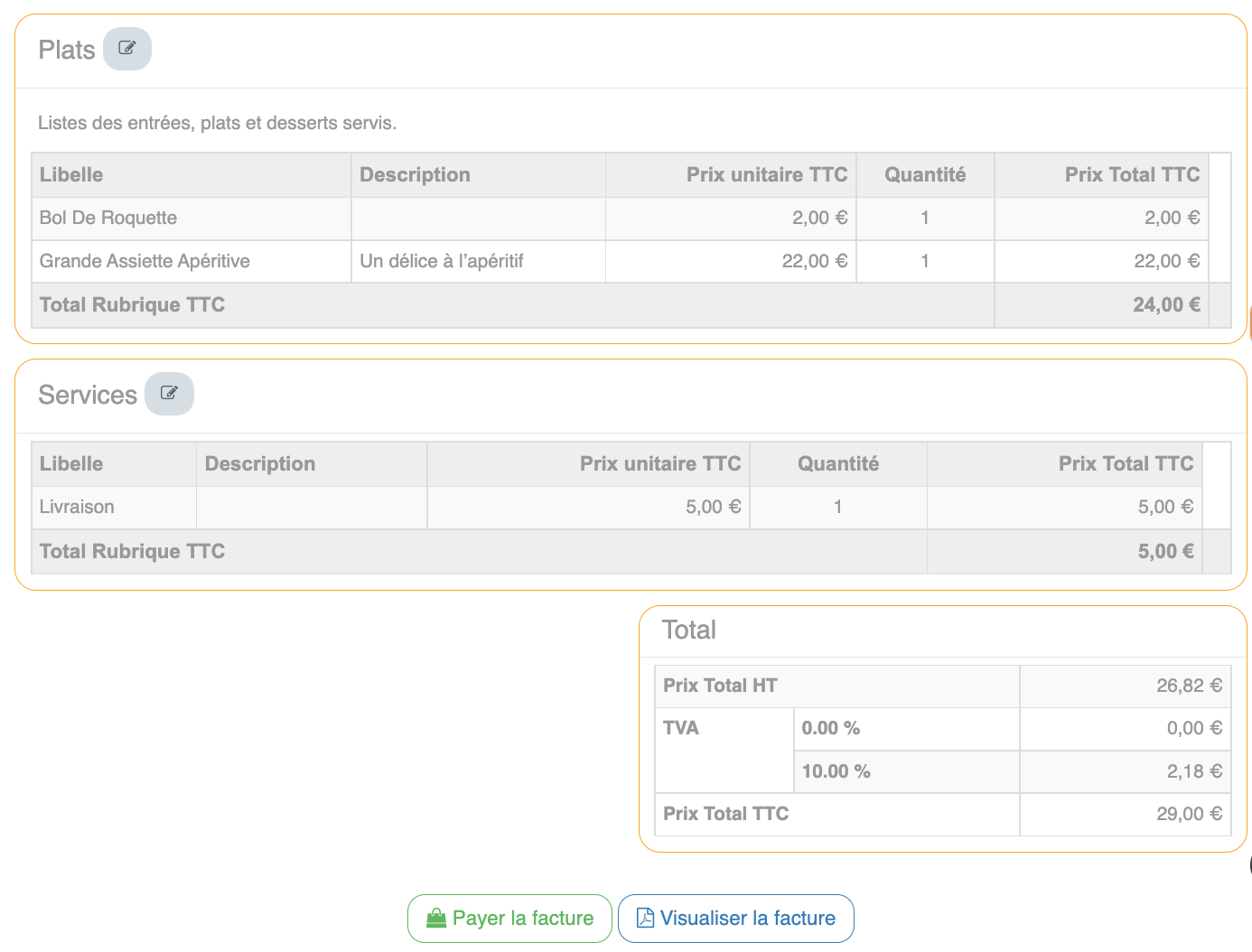 Facture validéeUne fois la facture validée, il est possible de la visualiser ou de la payer (voir